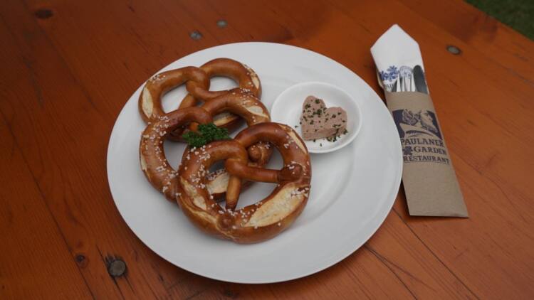 และมาถึงร้านพอลลาเนอร์ การ์เด้นท์ ทั้งทีต้องไม่พลาด ขนมปังเพรสเซล ในรูปลักษณ์เลข 8 สไตล์เยอรมันที่ส่วนใหญ่ใช้เป็นเมนูอาหารที่กินช่วงเช้าหรือระหว่างรออาหารหลักมาเสริฟ์ แต่เพรสเซลของร้านพอลลาเนอร์ การ์เด้นท์ มีความพิเศษและแตกต่าง เนื้อขนมปังจะกรอบนอกนุ่มในผสมผสานกับความเค็มกับเกลือเล็กน้อยได้อย่างลงตัวที่สุด เสริฟ์ร้อนๆ พร้อมกับ ตับบดในพิมรูปหัวใจสวยงาม หรือจะเป็นเสริฟ์กับเนยแท้ ๆ หอมละมุน ก็อร่อยได้อย่างลงตัวที่สุด