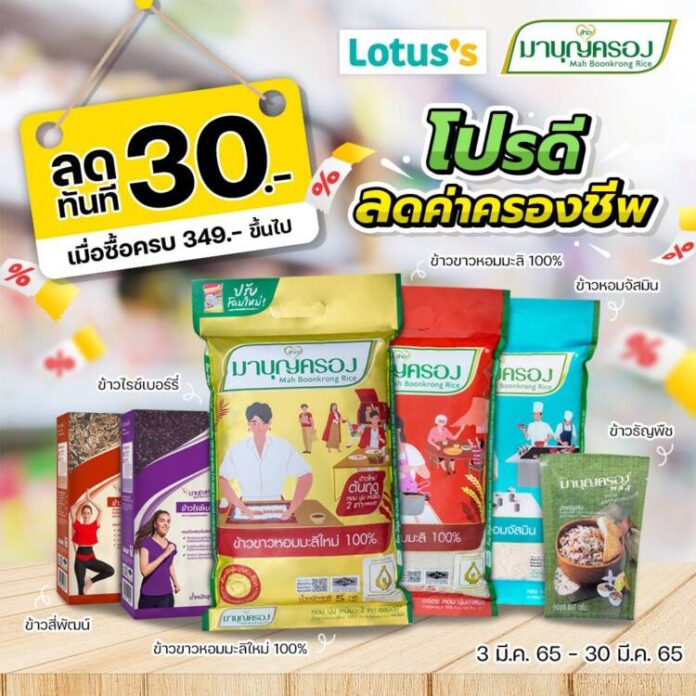 ข้าวมาบุญครอง ช่วยลดค่าครองชีพผู้บริโภค จัดโปรดี ลดทันที 30 บาท ทานข้าวอร่อยแบบสบายใจ คลายกังวลเรื่องค่าใช้จ่าย เพียงซื้อผลิตภัณฑ์ข้าวมาบุ