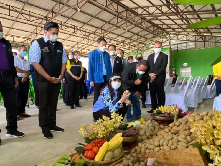 จากนั้น ได้พบปะหัวหน้าส่วนราชการ สมาชิกสหกรณ์ กลุ่มเกษตรกร และประชาชนในพื้นที่ที่มารอต้อนรับ และเยี่ยมชมนิทรรศการการดำเนินธุรกิจของสหกรณ์ฯ และบูธจัดแสดงสินค้าทางการเกษตรของกลุ่มอาชีพในสังกัดสหกรณ์กลุ่มเกษตรกร ได้แก่ และพบปะเกษตรกรรุ่นใหม่ที่เข้าร่วมโครงการนำลูกหลานเกษตรกรกลับบ้าน สานต่ออาชีพทางการเกษตร ในพื้นที่จังหวัดเชียงใหม่ จำนวน 5 ราย นำโดย นายสถาพร คิดไชย อายุ 47 ปี นำผลผลิต ปลากดหลวงรมควัน ผักผลไม้อินทรีย์ ซึ่งผลผลิตได้รับรอง PGS (Participatory Guarantee Systems) เป็นระบบการรับรองแบบมีส่วนร่วม รับรองคุณภาพที่มุ่งเน้นการรับประกันคุณภาพในท้องถิ่น ตนเองเริ่มทำเกษตรปี 2557 ทำไร่นาสวนผสม อาทิ มันเทศญี่ปุ่น ข้าวอินทรีย์ ข้าวเหนียวสันป่าตอง ข้าวจ้าวมะลิ 105 คะน้า ผักกาด ลำไย มะพร้าวน้ำหอม มะม่วง และประมงน้ำจืด เช่น เลี้ยงปลา เลี้ยงกระบือ ทำเกษตรแบบอินทรีย์มีตลาดและสามารถจำหน่ายผ่านบูท งานแสดงสินค้า ตลาดออนไลน์ เป็นแหล่งเรียนรู้ด้านเกษตรและประมง สร้างรายได้พอเพียงตลอดปี