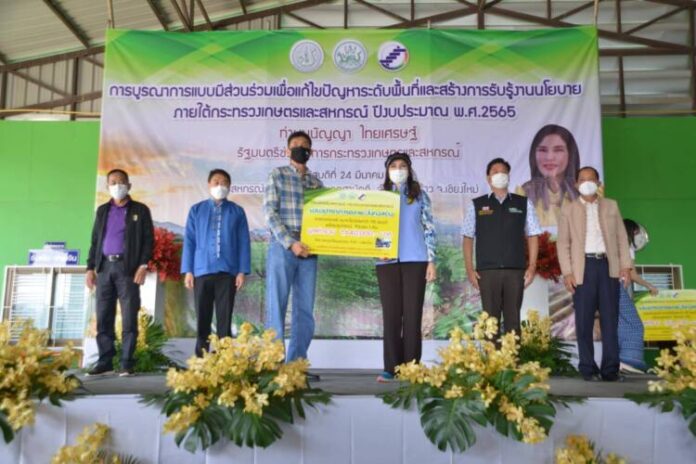 นางสาวมนัญญา ไทยเศรษฐ์ รัฐมนตรีช่วยว่าการกระทรวงเกษตรและสหกรณ์ พร้อม นายวิศิษฐ์ ศรีสุวรรณ์ อธิบดีกรมส่งเสริมสหกรณ์ นายอัชฌา สุวรรณนิตย์ รองอธิบดีกรมส่งเสริมสหกรณ์ และคณะ ลงพื้นที่จังหวัดเชียงใหม่ ติดตามการดำเนินงานตามนโยบายกระทรวงเกษตรและสหกรณ์ โดยมี นายทรงศักดิ์ วลัยใจ นายอำเภอพร้าว นายสุริยะ คำปวง สหกรณ์จังหวัดเชียงใหม่ นายไพโรจน์ มหาวัน ประธานกรรมการสหกรณ์ฯ หัวหน้าส่วนราชการ เจ้าหน้าที่ สมาชิกสหกรณ์ และเกษตรกร ต้อนรับ ณ สหกรณ์การเกษตรโหล่งขอดสามัคคี จำกัด ตำบลโหล่งขอดสามัคคี อำเภอพร้าว จังหวัดเชียงใหม่