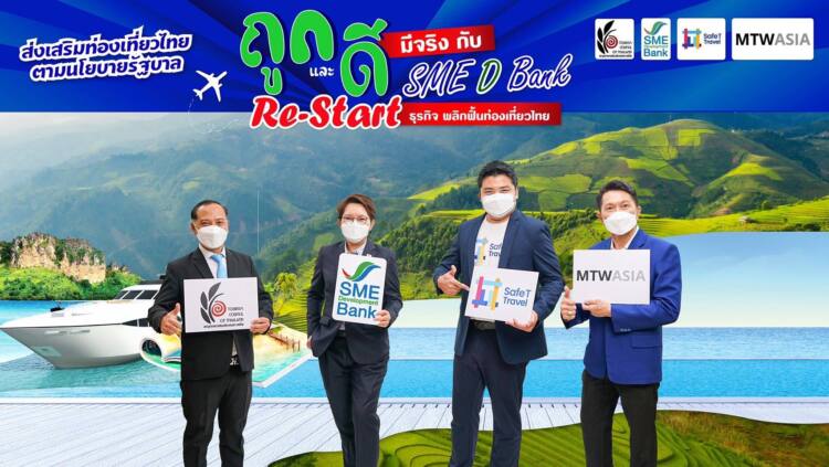 SME D Bank ขานรับนโยบายรัฐบาล ช่วยเหลือพลิกฟื้นภาคการท่องเที่ยวไทย ข้ามผ่านโควิด-19 จับมือ 3 พันธมิตร สภาอุตสาหกรรมท่องเที่ยวฯ , แพลตฟอร์ม Safe T Travel และ MTW  เปิดตัวโครงการ “ถูกและดีมีจริง กับ SME D Bank” ปูพรมทั่วไทยหนุนเอสเอ็มอีธุรกิจท่องเที่ยวและเกี่ยวเนื่อง ได้รับวัคซีนเสริมแกร่ง “4 เติม” ครอบคลุมด้านพัฒนายกระดับปรับตัวสู่การท่องเที่ยววิถีใหม่ คู่ด้านเงินทุน “สินเชื่อ SMEs Re-Start” วงเงิน 2,000 ล้านบาท  ช่วยเสริมสภาพคล่อง หนุนธุรกิจกลับมาเดินหน้าได้เต็มศักยภาพ