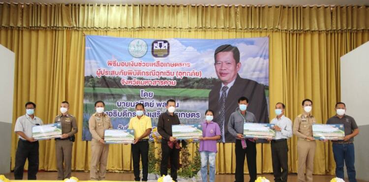 นายนวนิตย์ พลเคน รองอธิบดีกรมส่งเสริมการเกษตร กล่าวว่า การมอบเงินช่วยเหลือเยียวยาในครั้งนี้ ซึ่งคาดหวังว่าเกษตรกรผู้ประสบภัยของจังหวัดมหาสารคาม จะนำเงินที่ได้ ไปบรรเทาความเดือดร้อนจากผลกระทบในชีวิตประจำวัน และบริหารจัดการ เป็นต้นทุนเพื่อการผลิตในฤดูกาลที่จะมาถึง ตลอดจนโครงการต่างๆ ที่เข้าดำเนินการสนับสนุนเกษตรกรหลังน้ำลด เช่น การฟื้นฟูไม้ผล ไม้ยืนต้น การสนับสนุนพืชพันธุ์ดีต่างๆ ให้เกษตรกรนำไปปลูกและเก็บเมล็ดพันธุ์ เพื่อใช้ในการเพาะปลูกในฤดูกาลต่อไป เพื่อลดรายจ่ายและสร้างรายได้ สร้างภูมิคุ้มกันด้านความมั่นคงทางอาหารของครัวเรือน