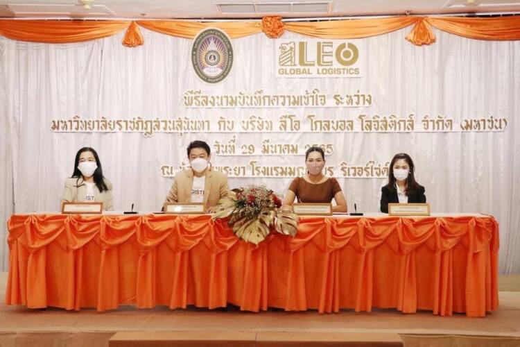 ขณะเดียวกัน รองศาสตราจารย์ ดร.ชุติกาญจน์ ศรีวิบูลย์ อธิการบดีมหาวิทยาลัยราชภัฏสวนสุนันทา กล่าวว่า มีความยินดีอย่างยิ่งกับการร่วมมือในครั้งนี้ ถือเป็นมิติใหม่ของสถาบันการศึกษาและภาคเอกชน โดยเฉพาะบริษัท ลีโอ โกลบอล โลจิสติกส์จำกัด ซึ่งเป็นบริษัทชั้นนำด้านธุรกิจโลจิสติกส์และการขนส่งสินค้าระหว่างประเทศมานานกว่า 31 ปี ที่ให้ความสำคัญของการศึกษาและการพัฒนาศักยภาพของบุคลากร