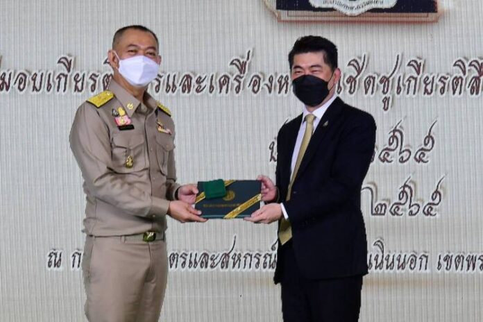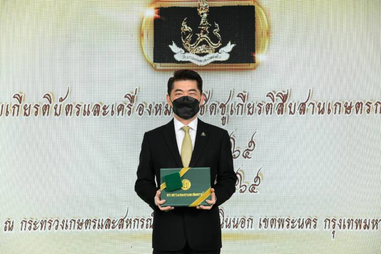 1 เม.ย. 65 ดร.เฉลิมชัย ศรีอ่อน รัฐมนตรีว่าการกระทรวงเกษตรและสหกรณ์ มอบเกียรติบัตรและเครื่องหมายเชิดชูเกียรติสืบสานเกษตรกรรมยั่งยืน ประจำปี 2565 แก่ นายประสิทธิ์ บุญดวงประเสริฐ ประธานคณะผู้บริหาร บริษัท เจริญโภคภัณฑ์อาหาร จำกัด (มหาชน) หรือซีพีเอฟ เพื่อเชิดชูเกียรติผู้ที่มีคุณงามความดี ทำคุณประโยชน์ให้แก่กระทรวงเกษตรฯ ด้านการสืบสานเกษตรกรรมยั่งยืน สร้างประโยชน์แก่สังคม สามารถนำองค์ความรู้มาใช้ในทางธุรกิจจนประสบความสำเร็จ ช่วยขับเคลื่อนงานด้านการเกษตรอย่างยั่งยืน ในโอกาสกระทรวงเกษตรฯ ครบรอบ 130 ปี ในวันที่ 1 เมษายน 2565 ณ ห้องประชุม 115 กระทรวงเกษตรฯ ถนนราชดำเนินนอก