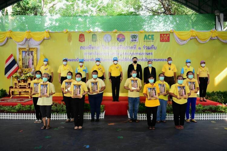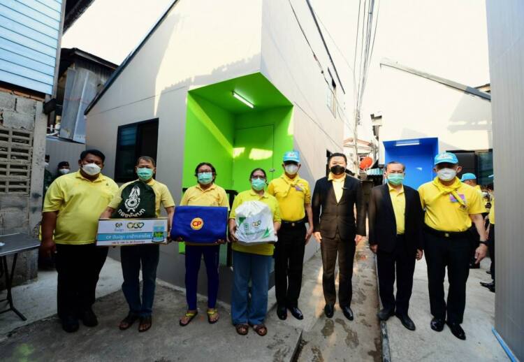 พลโท สุขสรรค์ หนองบัวล่าง แม่ทัพภาคที่ 1 พร้อมด้วย นายสุภกิต เจียรวนนท์ ประธานกรรมการ เครือเจริญโภคภัณฑ์ และ บริษัท เจริญโภคภัณฑ์อาหาร จำกัด (มหาชน) หรือซีพีเอฟ ร่วมส่งมอบบ้านพักที่สร้างแล้วเสร็จจำนวน 10 หลัง จากทั้งหมด 47 หลัง ให้แก่ชาวชุมชนคลองเตย เพื่อยกระดับคุณภาพชีวิตและสร้างสุขอนามัยที่ดีแก่กลุ่มเปราะบาง ภายใต้ “โครงการสร้างและซ่อมแซมบ้านพักให้กับผู้ยากไร้และด้อยโอกาส” ในโครงการที่ 2 ซึ่งดำเนินการโดยกองทัพบก สนับสนุนโดยซีพีเอฟ พร้อมทั้งร่วมมอบเครื่องอุปโภคและสิ่งของจำเป็น ตลอดจนยาสมุนไพรฟ้าทะลายโจรจากเครือซีพี สำหรับแจกจ่ายประชาชน ตามโครงการ “ซีพี ปันปลูก ฟ้าทะลายโจร” เพื่อสนับสนุนให้คนไทยเข้าถึงยาสมุนไพรไทย ณ ลานกีฬา ล็อค 4–5–6 ชุมชนคลองเตย