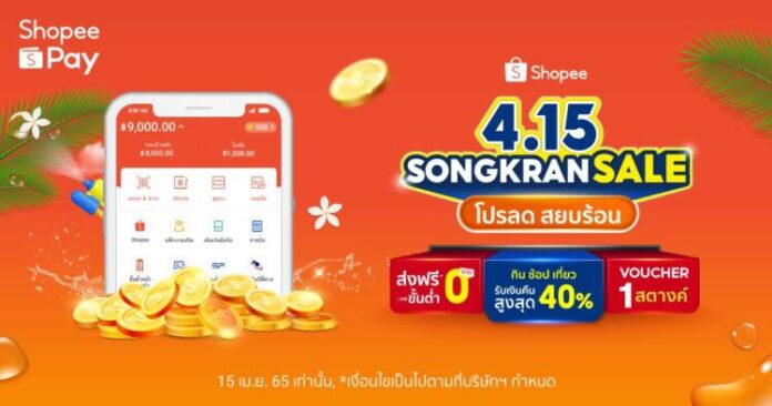 ShopeePay’ (ช้อปปี้เพย์) ผู้ให้บริการด้านการชำระเงินผ่าน Mobile Wallet แบบครบวงจรบนช้อปปี้ เปิดเช็กลิสต์ตะลุยความสุขหรรษาฉลองวันหยุดยาวรับเทศกาลสงกรานต์กับแคมเปญ Shopee 4.15 Songkran Sale’ โปรลด สยบร้อน กิน ช้อป เที่ยว กันให้หนำใจ พร้อมมอบของขวัญปีใหม่ไทยให้แก่ผู้ใช้งานด้วย Shopee Coins Cashback 40%[1] และส่วนลดสูงสุดถึง 400 บาท[2] เพียงใช้จ่ายผ่าน ShopeePay ที่ครอบคลุมทุกการใช้จ่ายตลอดช่วงเทศกาลสงกรานต์นี้