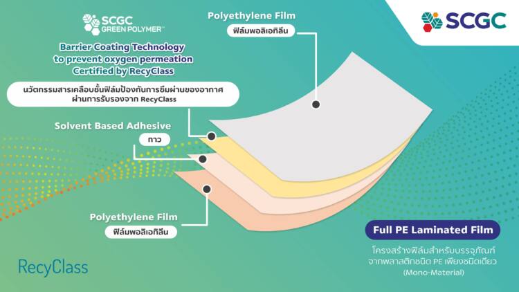 เช่น นวัตกรรมเม็ดพลาสติกรีไซเคิลคุณภาพสูง ภายใต้แบรนด์ SCGC GREEN POLYMER™ และล่าสุดที่เอสซีจีซีได้รับการรับรองมาตรฐานระดับสากลจากรีไซคลาส คือ นวัตกรรมสารเคลือบชั้นฟิล์มป้องกันการซึมผ่านของอากาศ ทำให้ผู้ผลิตบรรจุภัณฑ์พลาสติกชนิดอ่อนที่จำเป็นต้องใช้วัสดุหลายชนิดในการขึ้นรูปซึ่งรีไซเคิลได้ค่อนข้างยาก สามารถมีทางเลือกใหม่เพื่อสิ่งแวดล้อมที่ยั่งยืน นั่นคือ สามารถนำสารเคลือบชั้นฟิล์มฯ จากเอสซีจีซี ทดแทนวัสดุชั้นอื่นที่ทำหน้าที่ป้องกันการผ่านของอากาศ ทำให้บรรจุภัณฑ์นั้นผลิตจากพลาสติกประเภทเดียวกันทั้งหมด ช่วยให้การรีไซเคิลหลังการใช้งานมีประสิทธิภาพมากยิ่งขึ้น ในขณะเดียวกันยังคงคุณสมบัติด้านอื่น ๆ ได้ดีเช่นเดิม ทั้งนี้ เอสซีจีซีพร้อมที่จะร่วมมือกับผู้ประกอบการ และเจ้าของแบรนด์ที่สนใจพัฒนาบรรจุภัณฑ์ที่เป็นมิตรกับสิ่งแวดล้อม เพื่อช่วยเพิ่มการรีไซเคิล และร่วมสร้างสรรค์โลกที่ยั่งยืนไปด้วยกัน