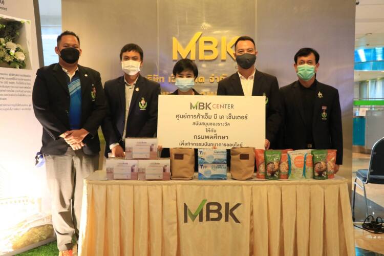 นางสาวศตกมล วรกุล ผู้อำนวยการฝ่ายสื่อสารองค์กร บริษัท เอ็ม บี เค จำกัด (มหาชน) (ที่ 3 จากซ้าย) มอบของรางวัลสนับสนุนการจัดกิ