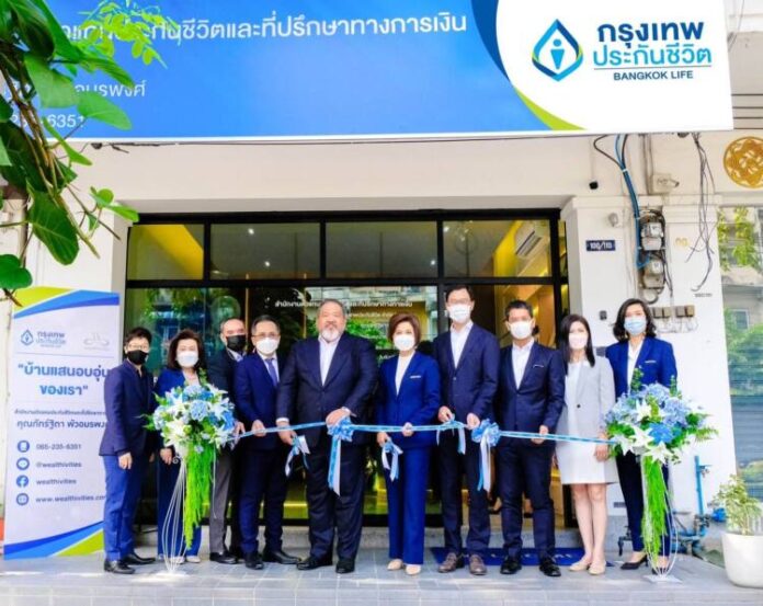 บริษัท กรุงเทพประกันชีวิต จำกัด (มหาชน) นำโดย นายโชน โสภณพนิช กรรมการผู้จัดการใหญ่และประธานเจ้าหน้าที่บริหาร (ที่ 4 จากขวา) และนายอนุชา ภิงคารวัฒน์ (ที่ 5 จากซ้าย) ผู้ช่วยผู้จัดการใหญ่สายงานตัวแทนและที่ปรึกษาทางการเงิน พร้อมคณะผู้บริหารระดับสูงและทีมงานฝ่ายขาย ร่วมแสดงความยินดีกับ นางสาวภัทร์ฐิตา พัวอมรพงศ์ (ที่ 5 จากขวา) ผู้จัดการสำนักงานตัวแทนประกันชีวิตและที่ปรึกษาทางการเงิน สาขาใหม่ เขตจตุจักร กรุงเทพมหานคร (บริเวณใกล้ตลาดบองมาร์เช่) เพื่อให้เป็นศูนย์ในการเพิ่มศักยภาพ ขยายฐานตลาดและสร้างความยั่งยืนในอาชีพที่ปรึกษาทางการเงิน และพร้อมให้บริการที่สะดวกสบายแก่ลูกค้าได้อย่างเต็มที่ โดยมี นายยูอิชิ ฮอนด้า (ที่ 3 จากขวา) กรรมการ นางอรนุช สำราญฤทธิ์ (ที่ 2 จากขวา) ผู้ช่วยผู้จัดการใหญ่สายประกันชีวิต และนายปรัชญ์ สิงหเสนี (ที่ 3 จากซ้าย) ผู้บริหารฝ่ายพัฒนาธุรกิจตัวแทนและที่ปรึกษาทางการเงิน รวมถึงทีมงานฝ่ายขาย ร่วมแสดงความยินดีในพิธีเปิดสาขาแห่งใหม่ เขตจตุจักร กรุงเทพมหานคร เมื่อเร็ว ๆ นี้
