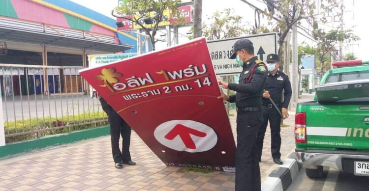 นอกจากนี้ สำนักเทศกิจได้ทำการกวดขันป้ายโฆษณาที่ติดตั้งในที่สาธารณะที่มิได้รับอนุญาตจากเจ้าพนักงานท้องถิ่น ก่อให้เกิดปัญหา  กีดขวางทางสัญจร  บดบังทัศนียภาพของผู้ขับขี่ยวดยาน  ทำลายทัศนียภาพของเมือง ฯลฯ โดยที่การติดตั้งป้ายดังกล่าว ถือว่าเป็นความผิดตามพระราชบัญญัติรักษาความสะอาดและความเป็นระเบียบเรียบร้อยของบ้านเมือง พ.ศ. 2535  มีโทษปรับไม่เกิน 5,000 บาท   ซึ่งเจ้าหน้าที่เทศกิจกรุงเทพมหานคร  ได้ออกตรวจสอบ  สอดส่อง กวดขัน จับ – ปรับ ผู้ฝ่าฝืนอย่างจริงจังและต่อเนื่องมาโดยตลอด   โดยในห้วงระหว่างเดือน พฤษภาคม 2561 ถึง วันที่ 27 เมษายน 2565 ได้ตรวจพบ และ จับกุม ดำเนินคดี ผู้ฝ่าฝืนติดป้ายโฆษณาโดยไม่ได้รับอนุญาต  ไปแล้ว  5,731  ราย  เปรียบเทียบปรับเป็นเงิน  15, 806,500  บาท
