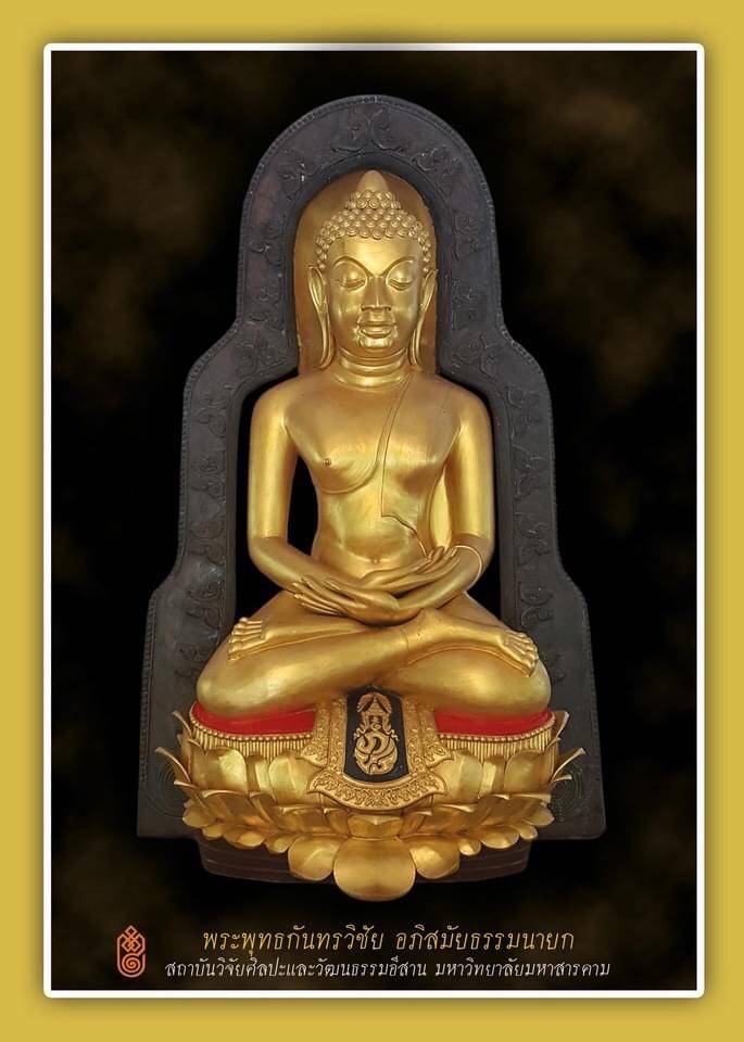รองศาสตราจารย์ ดร.ประยุกต์ ศรีวิไล อธิการบดีมหาวิทยาลัยมหาสารคาม กล่าวถึงความเป็นมาของ “พระพุทธกันทรวิชัยอภิสมัยธรรมนายก” เป็นพระพุทธรูปสิ่งศักดิ์สิทธิ์และเป็นที่ยึดเหนี่ยวจิตใจของชาวจังหวัดมหาสารคาม ซึ่งได้แนวคิดการสร้างพระเกิดขึ้น จากการริเริ่มของศูนย์ศิลปะและวัฒนธรรมอีสาน (ปัจจุบันคือสถาบันวิจัยศิลปะและวัฒนธรรมอีสาน) มหาวิทยาลัยศรีนครินทรวิโรฒมหาสารคาม โดยมี อาจารย์อาคม วรจินดา เป็นประธานศูนย์ฯ และ ผศ.บุญเลิศ สดสุชาติ เป็นกรรมการและเลขานุการ พร้อมด้วยคณาจารย์จากภาควิชาต่างๆ ซึ่งได้มีความเห็นว่าควรมีพระพุทธรูปที่เป็นเอกลักษณ์ประจำภาคอีสานและจัดสร้างขึ้นเพื่อร่วมเฉลิมฉลองเนื่องในโอกาสที่กรุงรัตนโกสินทร์มีอายุครบ 200 ปี (พ.ศ.2525) ด้วย