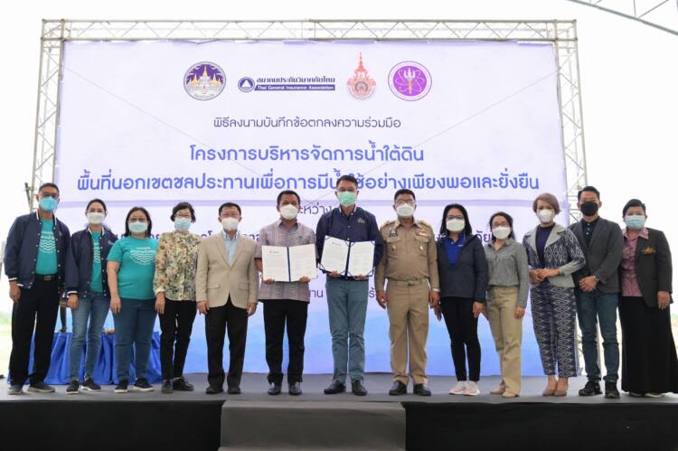 นายอานนท์ วังวสุ นายกสมาคมประกันวินาศภัยไทย กล่าวว่า สมาคมประกันวินาศภัยไทย ได้ลงนามบันทึกข้อตกลงความร่วมมือ (MOU) กับ มหาวิทยาลัยเทคโนโลยีราชมงคลอีสาน (มทร.อีสาน) ในโครงการบริหารจัดการน้ำใต้ดินและแหล่งน้ำชุมชนพื้นที่นอกเขตชลประทาน เพื่อการมีน้ำใช้อย่างเพียงพอและยั่งยืน ร่วมกันแก้ปัญหาการขาดแคลนน้ำในพื้นที่ด้วยการพัฒนาแหล่งน้ำในชุมชนเพื่อใช้ในการอุปโภค บริโภค และการเกษตร เพื่อให้ชุมชนและประชาชนได้มีอาชีพ มีรายได้ และมีคุณภาพชีวิตที่ดีขึ้น พร้อมทั้งแลกเปลี่ยนความรู้ ข้อมูล เทคโนโลยีและนวัตกรรมในการสร้างแหล่งเรียนรู้เรื่องการบริหารจัดการน้ำใต้ดินและแหล่งน้ำชุมชนเพื่อการมีน้ำใช้อย่างเพียงพอและยั่งยืน เป็นศูนย์เรียนรู้และศึกษาดูงานด้านการบริหารจัดการน้ำใต้ดินเพื่อการเกษตรที่ครบวงจรสำหรับเกษตรกรและประชาชนทั่วไป โดยมีพื้นที่ดำเนินการ ณ มหาวิทยาลัยเทคโนโลยีราชมงคลอีสาน วิทยาเขตร้อยเอ็ด ณ ทุ่งกุลาร้องไห้ ตำบลหินกอง อำเภอสุวรรณภูมิ จังหวัดร้อยเอ็ด