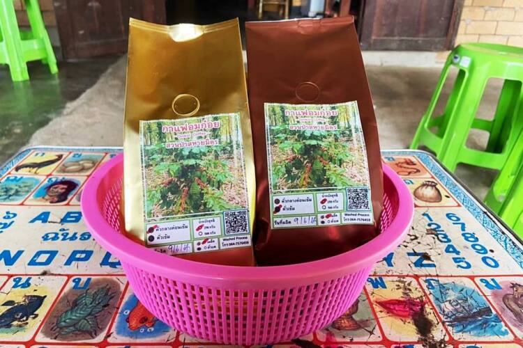 นายจอมกิตติ กล่าวเพิ่มเติมว่า ปัจจุบันดำเนินตาม 3 แผนยุทธศาสตร์ ทั้ง ยุทธศาสตร์ 1 ปกป้องรักษาป่าต้นน้ำ ด้วยการปลูกป่าต้นต้นน้ำ เพื่อการอนุรักษ์ ด้วยการปลูกกาแฟใต้ร่มไม้ใหญ่ (Shade-grown Coffee) มีเป้าหมายพื้นที่ปลูกกาแฟรวม 1,000 ไร่ สำหรับในปี 2564 มีเป้าหมายส่งเสริมการปลูกจำนวน 130 ไร่ โดยดำเนินการในบ้านเกียนใหม่ ต.นาเกียน บ้านปิตุคี ต.ยางเปียง และบ้านยางเปียงใต้ ต.ยางเปียง โดยมีเกษตรกรร่วมโครงการ 72 ราย พร้อมมีแผนสนับสนุนโรงแปรรูปกาแฟชุมชน จำนวน 1 โรง ในนามโรงแปรรูปวิสาหกิจชุมชน กาแฟใต้ร่มไม้ใหญ่ (Shade-grown Coffee) อมก๋อยโมเดล สนับสนุนโดยเครือซีพี ซึ่งถือเป็นกิจการเพื่อสังคม (SE) โดยมีเป้าหมายสร้างกำไรสุทธิ 10,000 บาท/ไร่ ส่วน ยุทธศาสตร์ 2 สร้างอาชีพรายได้ที่ยั่งยืน เกษตรมูลค่าสูง และกิจการเพื่อสังคม โดยในปี 2564 ดำเนินการส่งเสริมการสร้างอาชีพเสริมด้วยพืชเศรษฐกิจมูลค่าสูง ได้แก่ ฟักทอง เพื่อจำหน่ายแก่โลตัส (LOTUS’s) และตลาดเครือข่าย โดยดำเนินการในพื้นที่บ้านผีปานเหนือ ต.นาเกียน มีเกษตรกรร่วมโครงการ จำนวน 15 ราย ซึ่งคาดว่าจะได้ปริมาณผลผลิตฟักทอง ประมาณ 64 ตัน ใน 32 ไร่ สามารถสร้างรายได้ให้กลุ่มเกษตรกร 960,000 บาท หรือประมาณ 64,000 บาท ต่อราย และยุทธศาสตร์ 3 สร้างชุมชนที่ยั่งยืน ด้วยโครงการข้าวไร่ 1-2-3 ในแปลงไร่หมุนเวียน เพื่อลดการทำไร่เลื่อนลอย ดำเนินการในบ้านปิตุคี ต.ยางเปียง จำนวน 2 ราย ควบคู่กับโครงการการศึกษา (ทรูปลูกปัญญา) โดยดำเนินการสนับสนุนอุปกรณ์การเรียนการสอนให้กับโรงเรียนในพื้นที่อำเภออมก๋อย เพื่อส่งเสริมการเรียนรู้ จำนวน 20 โรงเรียน