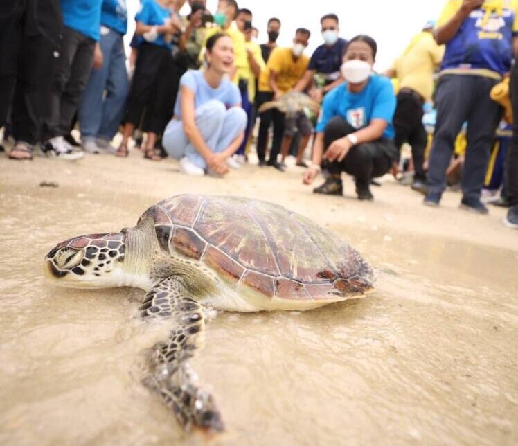 นายสิทธิโรจน์ แก้วหนองเสม็ด หัวหน้าเครือข่ายช่วยเหลือสัตว์ทะเลหายาก และรองประธานชมรมนักดำน้ำเพื่อการอนุรักษ์เกาะพะงัน(Phangan Sea Guardian) เล่าให้ฟังอย่างน่าสนใจว่า เต่าที่นำมาปล่อยในครั้งนี้จำนวน 3 ตัว เป็นเต่าขนาดใหญ่ที่มาเกยตื้นเพราะได้รับบาดเจ็บ หรือติดอวนมา และโชคดีที่มีผู้พบเห็นแล้วประสานมาทางเครือข่ายช่วยเหลือสัตว์ทะเลหายากอำเภอเกาะพะงัน หรือ Marine Animals Rescue ซึ่งทำงานร่วมกับศูนย์วิจัยทรัพยากรทางทะเลและชายฝั่งอ่าวไทยตอนกลางของจังหวัดชุมพร ฝ่ายสัตว์ทะเล ซึ่งเครือข่ายจะได้รับการฝึกทบทวนทุกปีโดยศูนย์จะส่งผู้เขี่ยวชาญที่เป็นสัตวแพทย์เฉพาะทางมาอบรมทุกปี เราจะดูแลเกาะที่สมุย เกาะเต่า เกาะพะงัน หากเกิดกรณีสัตว์ทะเลหายากได้รับบาดเจ็บ ตาย เกยตื้นหรือถูกทำร้ายจะแจ้งมาทางกลุ่ม ทางกลุ่มจะรับมาดูแล ประเมินอาการเพื่อรักษา อย่างตัวที่นำมาปล่อยก็เคยถูกทำร้าย อาการสาหัส จึงส่งไปรักษาที่ศูนย์ฯ เป็นเวลา 5 เดือน แล้วส่งกลับมาปล่อยคืนสู่ธรรมชาติในวันนี้