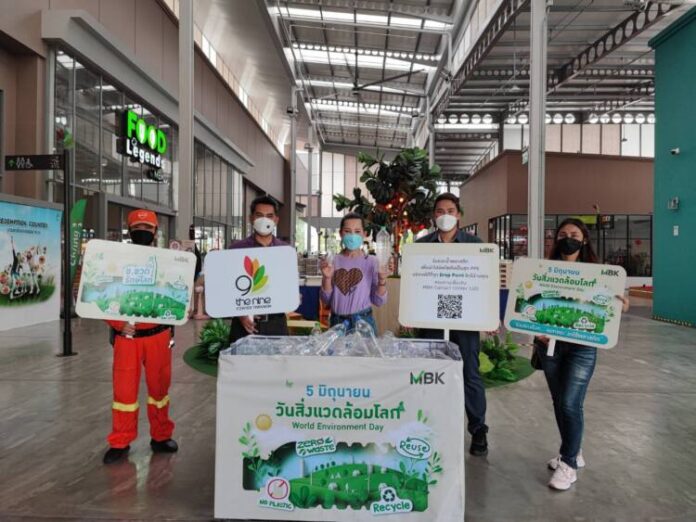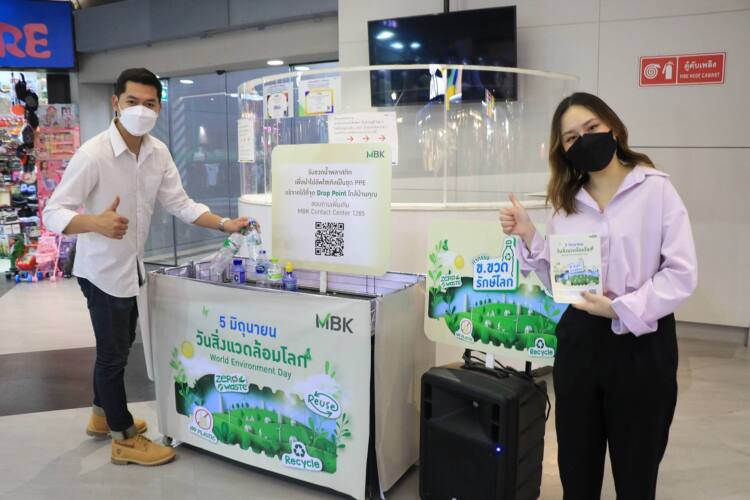 และเนื่องในวันสิ่งแวดล้อมโลก (World Environment Day) 5 มิถุนายน ศูนย์การค้าในเครือเอ็ม บี เค ได้แก่ เอ็ม บี เค เซ็นเตอร์ พาราไดซ์ พาร์ค พาราไดซ์ เพลส เดอะไนน์ เซ็นเตอร์ พระราม 9 และเดอะไนน์ เซ็นเตอร์ ติวานนท์ ขอร่วมเป็นส่วนหนึ่งในการรักษาและสร้างความสมดุลของโลกใบนี้ โดยการลดขยะพลาสติก กับ โครงการ ข.ขวด รักษ์โลก ภายใต้คอนเซ็ปต์ “ร่วมรักษ์โลก..แยกขยะ งดใช้พลาสติก” โดยมี นางสาวศตกมล วรกุล ผู้อำนวยการสื่อสารองค์กร นางพิทยา อินภิรมย์ ผู้อำนวยการ 2 สำนักกรรมการผู้อำนวยการ บริษัท เอ็ม บี เค จำกัด (มหาชน) และนางสาววราภรณ์ ตติปาณิเทพ ผู้จัดการทั่วไป บริษัท เดอะไนน์ ติวานนท์ จำกัด ได้ร่วมเดินรณรงค์ประชาสัมพันธ์ ทั้ง 4 ศูนย์การค้าฯ เพื่อเชิญชวนประชาชน ลูกค้าที่มาใช้บริการ และผู้ประกอบการร้านค้า มาร่วมบริจาคขวดน้ำพลาสติก เพื่อนำไปอัพไซเคิล (Upcycle) เปลี่ยนขยะพลาสติกให้มีมูลค่า เพื่อทำเป็นชุด PPE ขณะเดียวกันได้รับเกียรติจาก นางจอมขวัญ โรหิตเสถียร หัวหน้าฝ่ายรักษาความสะอาดและสวนสาธารณะ สำนักงานเขตสวนหลวง ให้เกียรติมาร่วมกิจกรรมดังกล่าวที่เดอะไนน์ เซ็นเตอร์ พระราม 9 เช่นกัน