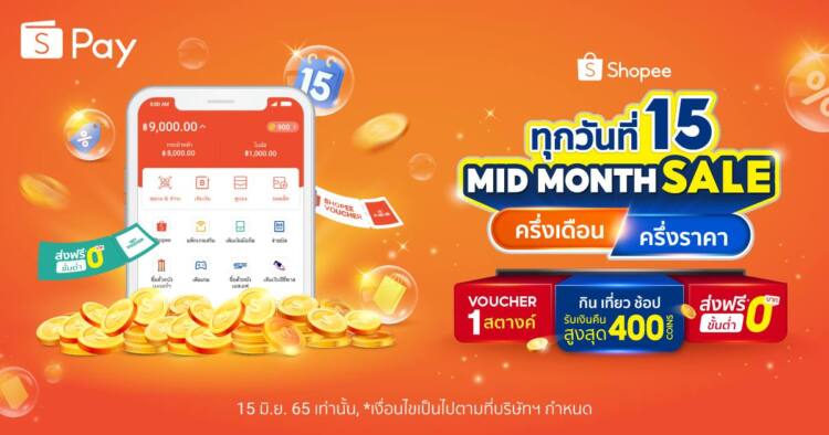 กรุงเทพฯ, 9 มิถุนายน 2565 – ใครว่าช้อปให้คุ้มค่าต้องรอสิ้นเดือนอย่างเดียว ShopeePay (ช้อปปี้เพย์) ผู้ให้บริการด้านการชำระเงินผ่าน Mobile Wallet แบบครบวงจรบนช้อปปี้ ส่งฮาวทูช้อปกลางเดือน ใช้จ่ายแบบ save เงินในประเป๋าได้ยาว ๆ จนถึงสิ้นเดือน ตอบโจทย์ทุกไลฟ์สไตล์ กิน เที่ยว ช้อป พร้อมพบกับความพิเศษเมื่อใช้จ่ายผ่าน ShopeePay ในแคมเปญ “ทุกวันที่ 15 Mid Month Sale” ครึ่งเดือน ครึ่งราคา ในเดือนมิถุนายน บนแอปพลิเคชันช้อปปี้เท่านั้น