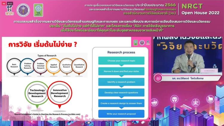 อย่างไรก็ตาม การจัดงานชี้แจงกรอบการวิจัยและนวัตกรรม ปี 2566 และการแถลงผลสำเร็จจากการวิจัยและนวัตกรรม NRCT Open House ระหว่างวันที่ 12 – 19 มิถุนายน 2565 ซึ่งในวันนี้เป็นวันที่สาม จะเป็นด้านเศรษฐกิจและการเกษตร การสร้างการรับรู้ รวมถึงการแนะนำการเขียนข้อเสนอทางการวิจัยในประเด็นด้านเศรษฐกิจและการเกษตร เน้นการเพิ่มมูลค่า ความต้องการทางการตลาด โดยนำเทคโนโลยีและนวัตกรรมเข้ามามีส่วนช่วยในการยกระดับผลิตภัณฑ์สินค้าทางการเกษตร การทำเกษตรแปรรูปเพื่อเพิ่มมูลค่าสินค้า สมาร์ทฟาร์มมิ่ง เน้นการสร้าง องค์ความรู้ การผลิตสินค้าที่มีคุณภาพ สู่การวางแผนให้สอดคล้องกับปริมาณผู้บริโภค