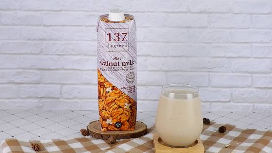 สูตรนี้ใช้นมจากถั่ววอลนัทคั้นสดเต็มเมล็ดแบรนด์ 137 ดีกรี ซึ่งถั่ววอลนัทหรือที่เรียกว่า “ถั่วสมอง” มีรูปร่างคล้ายสมองและคุณประโยชน์ของวอลนัท มีสารอาหารสำคัญหลายชนิด เช่น วิตามิน เกลือแร่  ไขมันดี โอเมก้า และสารต้านอนุมูลอิสระ และยังเพิ่มประสิทธิภาพการทำงานของสมอง สูตรนี้จึงเป็นเหมาะเป็นทางเลือกสำหรับเริ่มต้นวันใหม่ได้อย่างดี  นมวอลนัท 137 ดีกรีที่ให้ประโยชน์ตอร่างกายจากสารอาหารธรรมชาติ ไม่เติมเกลือ น้ำตาลทราย วัตถุกันเสีย สะอาด ปลอดภัย หาซื้อได้สะดวกตามร้านค้าและซูเปอร์มาร์เก็ตทั่วไป  หรือที่ www.facebook.com/137degrees