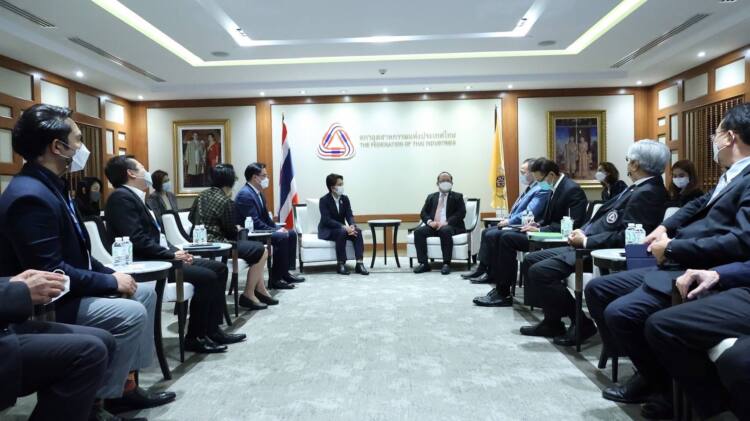 22มิ.ย.65 / นางสาวนารถนารี รัฐปัตย์ กรรมการผู้จัดการ พร้อมด้วยคณะผู้บริหาร ธนาคารพัฒนาวิสาหกิจขนาดกลางและขนาดย่อมแห่งประเทศไทย (ธพว.) หรือ SME D Bank เข้าแสดงความยินดีกับนายเกรียงไกร เธียรนุกุล เนื่องในโอกาสเข้ารับตำแหน่งประธานสภาอุตสาหกรรมแห่งประเทศไทย (ส.อ.ท.) พร้อมหารือถึงความร่วมมือที่จะส่งเสริมและสนับสนุนผู้ประกอบการเอสเอ็มอีไทย เข้าถึงบริการจาก ธพว. ทั้งด้าน “เงินทุน” วงเงินกู้สูงสุดถึง 50 ล้านบาท ควบคู่ด้าน “การพัฒนา” เติมองค์ความรู้ ยกระดับธุรกิจ เพิ่มศักยภาพกิจการเติบโตได้อย่างมีประสิทธิภาพ ณ ห้องรับรองมงคลสุธี ชั้น 8 ส.อ.ท. เมื่อวันที่ 21 มิถุนายน 2565 ที่ผ่านมา