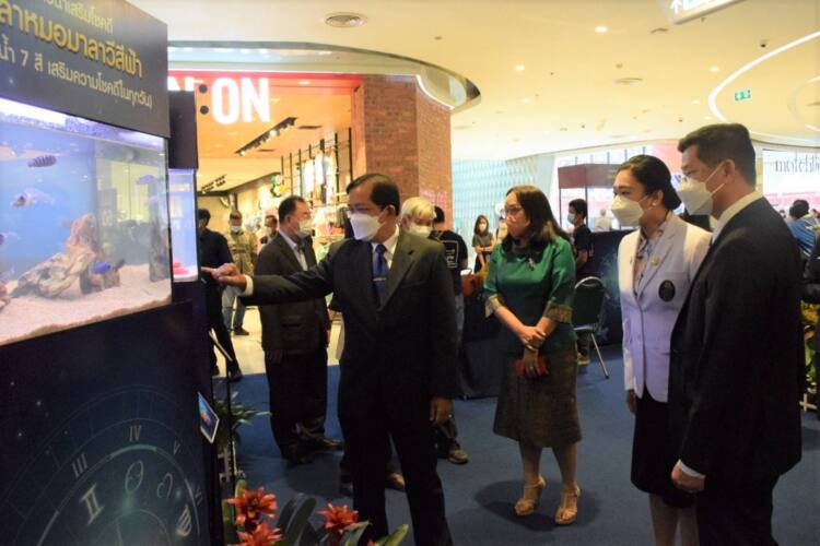 สำหรับกรมประมง มีการจัดแสดงนิทรรศการมีชีวิตในธีม Aquatic of Luck สัตว์น้ำสายมูเตลู ตามศาสตร์แห่งความเชื่อและศรัทธา โดยนำเสนอนิทรรศการความรู้และจัดแสดงพันธุ์สัตว์น้ำเพื่อเพิ่มความมั่นใจ ความเป็นสิริมงคลในการดำเนินชีวิตด้วยสัตว์น้ำมงคลเสริมดวง เนื่องจากที่ผ่านมาประเทศไทยต้องเผชิญกับสถานการณ์ Covid-19 ทำให้ประชาชนได้รับผลกระทบในทุกด้าน หมดขวัญกำลังใจ จึงนำเสนอสัตว์น้ำมงคล ในคอนเซป “สัตว์น้ำ : เสริมบารมี เสริมราศี เสริมโชคดี เสริมพลัง” ความเชื่ออยู่คู่กับคนไทยมาช้านาน
