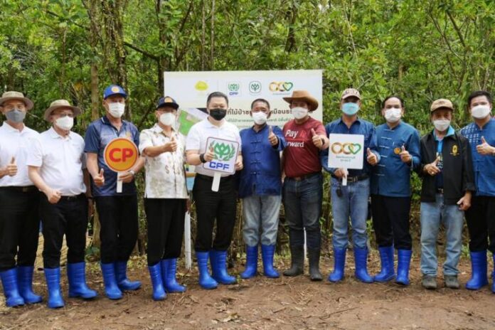 ด้าน นายไพโรจน์ อภิรักษ์นุสิทธิ์ รองกรรมการผู้จัดการบริหาร ธุรกิจสัตว์น้ำ ในฐานะประธานคณะกรรมการอำนวยการยุทธศาสตร์ป่าชายเลน ซีพีเอฟ กล่าวว่า บริษัทดำเนินธุรกิจด้วยความรับผิดชอบต่อสังคมและสิ่งแวดล้อม มุ่งมั่นสร้างความมั่นคงทางอาหาร ภายใต้วิสัยทัศน์ “ครัวของโลก” โดยกำหนดกลยุทธ์ 3 เสาหลัก ขับเคลื่อนองค์กรสู่ความยั่งยืน คือ อาหารมั่นคง สังคมพึ่งตน และดินน้ำป่าคงอยู่ จึงให้ความสำคัญกับการมีส่วนร่วมดูแลสมดุลระบบนิเวศ เพิ่มพื้่นที่สีเขียวให้กับประเทศไทย ดำเนินโครงการอนุรักษ์และฟื้นฟูป่าต้นน้ำและป่าชายเลน ภายใต้แนวคิด “จากภูผา สู่ป่าชายเลน” โดยซีพีเอฟดำเนินโครงการอนุรักษ์และฟื้นฟูป่าชายเลน “ปลูก ปัน ป้อง ป่าชายเลน” มาอย่างต่อเนื่อง ตั้งแต่ปี 2557 ช่วยอนุรักษ์และฟื้นฟูป่าชายเลนรวม 2,388 ไร่ ปัจจุบันเข้าสู่ระยะที่สองของโครงการ และครั้งนี้มีเป้าหมายอนุรักษ์และฟื้นฟูป่ารวมมากกว่า 1,300 ไร่ นอกจากนี้ บริษัทยังได้ส่งเสริมคุณภาพชีวิตของชุมชน ในพื้นที่ที่เราเข้าไปอนุรักษ์และฟื้นฟูป่าชายเลน เพื่อให้ชุมชนและป่าอยู่ร่วมกันได้อย่างยั่งยืนอีกด้วย