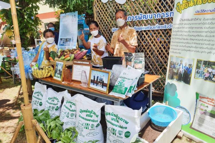 นายทองหล่อ วรฉัตร ประธานวิสาหกิจชุมชนท่องเที่ยวบ้านธรรมชาติล่าง ที่นำทีมงานมาร่วมจัดนิทรรศกาล ทั้งการผลิตปุ๋ยหมักชีวภาพนาโน กิจกรรมมัดย้อม 3 ป่า “จากฟากฟ้า สู่ภูผา และมหานที” การทำสมุนไพรลูกประคบ และศูนย์การเรียนรู้การบริหารจัดการนำขยะจากบ้านเรือนและขยะชายหาดมาสร้างประโยชน์ กล่าวว่า ความสำเร็จที่เกิดขึ้นทั้งหมดต้องขอบคุณทางซีพีเอฟ ที่ช่วยสนับสนุนทุกๆด้าน ทั้งบุคลากรที่มาให้ความรู้ร่วมกันพัฒนา งานด้านวิชาการ และด้านการตลาด ช่วยสร้างงาน สร้างอาชีพ และรายได้อย่างน่าพอใจ สมาชิกวิสาหกิจชุมชนฯ ทุกๆคนรู้สึกอบอุ่นใจเมื่อมีบริษัทเข้ามาจับมือกันเดินหน้าทำให้เห็นผลสัมฤทธิ์ที่เกิดขึ้นจริง เพราะพวกเรามีกำลังน้อยแต่เมื่อซีพีเอฟสนับสนุนก็ได้มีกำลังใจในการทำงานมากขึ้น เริ่มจากกิจกรรมแรกเรื่องการทำปุ๋ยเมื่อปี 2557 แล้วพัฒนาต่อยอดสู่กิจกรรมต่างๆ และขอขอบคุณ “สุวรรณลักษณ์ รีสอร์ท” ที่เอื้อเฟื้อสถานที่ให้เป็นที่ตั้งของวิสาหกิจชุมชนท่องเที่ยวบ้านธรรมชาติล่าง ให้ใช้พื้นที่ในการเป็นศูนย์เรียนรู้ของนักเรียน นักศึกษา หน่วยงานราชการ ภาคเอกชน ที่เข้ามาดูงานแล้วกว่า 2,000 คน สร้างความภาคภูมิใจให้กับสมาชิกทุกคน