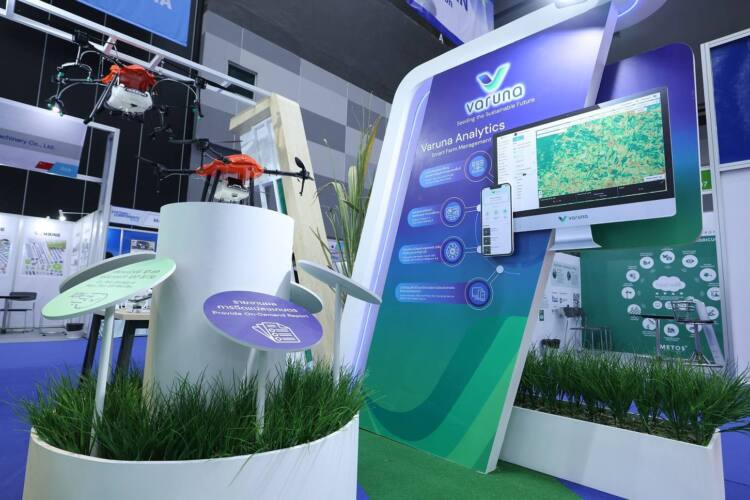 วรุณาในฐานะผู้นำการใช้เทคโนโลยีอัจฉริยะ เพื่อขับเคลื่อนให้เกิดประโยชน์สูงสุดต่อภาคการเกษตรของประเทศไทย โดยผสานเทคโนโลยีดาวเทียม (Satellite) กับการใช้ข้อมูลสำรวจและภาพถ่ายจากโดรนมัลติสเปกตรัม (Multispectrum Drone) และนำดาต้ามาวิเคราะห์ด้วยเทคโนโลยีปัญญาประดิษฐ์ (AI) ผ่านแพลตฟอร์ม “Varuna Analytics” ช่วยติดตามสุขภาพของพืช (Crop Health Monitoring) ติดตามการเจริญเติบโตของพืช (Growth Stage Monitoring) และช่วยคาดการณ์ผลผลิต (Yield Prediction) ได้อย่างแม่นยำแล้ว วรุณายังได้พัฒนาโดรนการเกษตรในชื่อ “เจ้าเอี้ยง AIANG” ซึ่งเป็นเทคโนโลยีที่ช่วยเกษตรกรในเรื่องการพ่นปุ๋ยและฉีดผลิตภัณฑ์การเกษตร นอกจากนี้ยังมีการอบรมนักบินโดรนมืออาชีพทั้งภาคทฤษฎีและปฏิบัติ เพื่อให้นักบินโดรนได้รับใบอนุญาตการบินที่ถูกต้อง สามารถฉีดแปลงเกษตรได้อย่างมีประสิทธิภาพและแม่นยำเหมาะกับพืชแต่ละประเภท อาทิ อ้อย ข้าวโพด ข้าว และมันสัมปะหลัง โดยปัจจุบันมีนักบินโดรนมืออาชีพพร้อมให้บริการในพื้นที่ต่างๆ และตั้งเป้าเพิ่มขึ้นเป็น 500 คนในปี 2565 นอกจากนี้วรุณากำลังพัฒนาซอฟท์แวร์แอปพลิเคชันเพื่อช่วยบริหารจัดการงานของนักบิน และจับคู่นักบินโดรนมืออาชีพกับเกษตรกร (Service Matching) ที่ต้องการใช้บริการโดรนฉีดแปลงเกษตรให้เชื่อมต่อกันและสามารถเรียกใช้บริการตามความต้องการอย่างมีประสิทธิภาพ