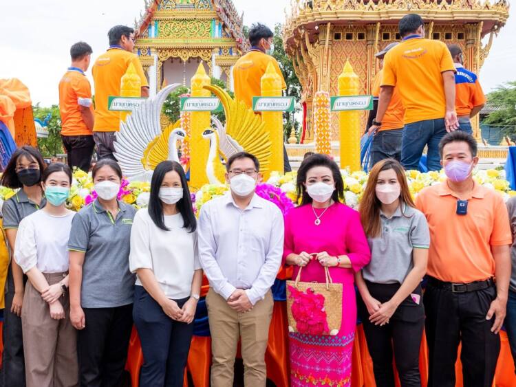 นายจิรชาญ คัมภิรานนท์ ผู้ช่วยกรรมการผู้จัดการใหญ่สายการตลาด นนท์ (ที่ 5 จากซ้าย) พร้อมด้วยนางปรียานุช นันทโชติ ผู้อำนวยการอาวุโสฝ่ายการเงิน (ที่ 6 จากซ้าย) และนางพาณิภัค ฉัตรวงศ์ตระกูล ผู้อำนวยการฝ่ายทรัพยากรบุคคลและธุรการ บริษัท พี อาร์ จี คอร์ปอเรชั่น จำกัด (มหาชน) (ที่ 4 จากซ้าย) ผู้บริหารกลุ่มธุรกิจข้าวมาบุญครอง นำทีมพนักงานข้าวมาบุญครองร่วมทำบุญในกิจกรรม “Rice-Style สายบุญ กับข้าวมาบุญครอง” ถวายเทียนจำนำพรรษา จำนวน 4 ต้น พร้อมถวายข้าวสารข้าวมาบุญครอง จำนวน 1 ตัน ให้กับ 4 วัดโดยรอบสำนักงานใหญ่ข้าวมาบุญครอง เพื่อนำไปใช้ภายในงานศาสนกิจ และนำไปช่วยเหลือครอบครัวกลุ่มเปราะบาง ภายในเทศบาลเมืองบางกะดี ปทุมธานี เมื่อเร็ว ๆ นี้
