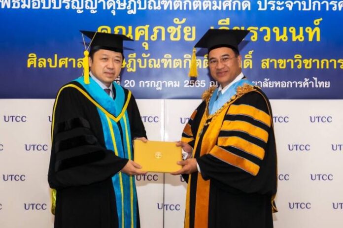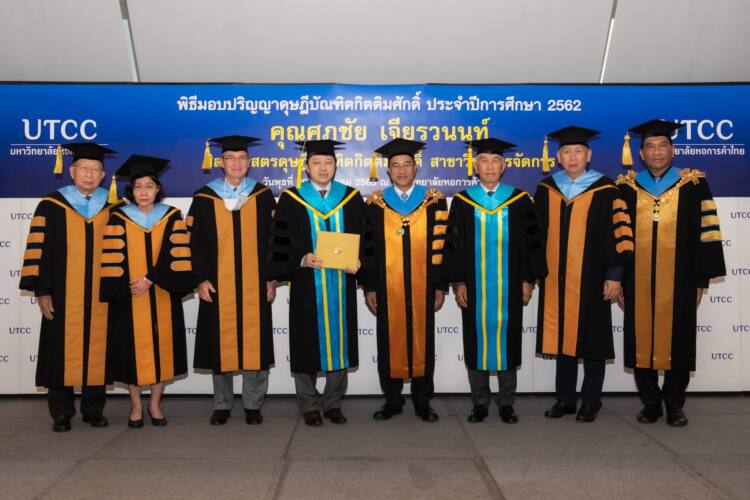 มหาวิทยาลัยหอการค้าไทย จัดพิธีประสาทปริญญาบัตรดุษฎีบัณฑิตกิตติมศักดิ์ สาขาวิชาการจัดการ ประจำปีการศึกษา 2562 ให้แก่ นายศุภชัย เจียรวนนท์ ประธานคณะผู้บริหาร เครือเจริญโภคภัณฑ์ โดยได้รับเกียรติจาก นายกลินท์ สารสิน นายกสภามหาวิทยาลัยหอการค้าไทย เป็นผู้ประสาทปริญญาบัตรในฐานะเป็นผู้ทรงคุณวุฒิที่อุทิศตนเป็นประโยชน์ต่อสังคมและประเทศชาติ ณ อาคาร 24 ชั้น 18 มหาวิทยาลัยหอการค้าไทย โดยมีนายอิสระ ว่องกุศลกิจ ที่ปรึกษากิตติมศักดิ์สภามหาวิทยาลย นายสนั่น อังอุบลกุล ที่ปรึกษาสภามหาวิทยาลัย Mr.Harald Link ที่ปรึกษาสภามหาวิทยาลัย รศ.ดร.เสาวณีย์ ไทยรุ่งโรจน์ ที่ปรึกษาประจำสภามหาวิทยาลัย นายเกริกไกร จีระแพทย์ กรรมการสภาผู้ทรงคุณวุฒิ(อุปนายก) และกรรมการสภาผู้ทรงคุณวุฒิของมหาวิทยาลัยหอการค้า พร้อมด้วยครอบครัว อันมี นางบุษดี เจียรวนนท์-ภริยา นายกรวัฒน์ เจียรวนนท์-บุตรชาย และนางสาวกมลนันท์ เจียรวนนท์-บุตรสาว ร่วมแสดงความยินดี