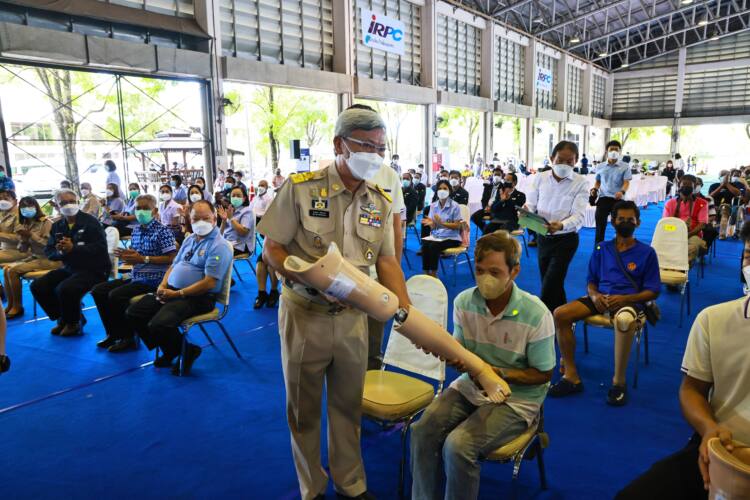 เมื่อวันที่ 22 ก.ค.ที่สโมสรไออาร์พีซี สปอต คอมเพล็กซ์ ต.เชิงเนิน อ.เมือง จ.ระยอง นายชาญนะ เอี่ยมแสง ผวจ.ระยอง เป็นประธานในพิธีส่งมอบขาเทียมพระราชทาน มูลนิธิขาเทียมในสมเด็จพระศรีนครินทราบรมราชชนนี ที่ได้มาออกหน่วยทำขาเทียมพระราชทานให้กับผู้พิการในจังหวัดระยอง ระหว่างวันที่ 17-22 ก.ค.นี้ มีนายแพทย์วิรัช พันธ์พานิช รองเลขาธิการมูลนิธิขาเทียมในสมเด็จพระศรีนครินทราบรมราชชนนี พล.ท.นายแพทย์ธำรงรัตน์ แก้วกาญจน์ รองประธานกรรมการมูลนิธิขาเทียมใน สมเด็จพระศรีนครินทราบรมราชชนนี นายวรวุฒิ ศิวะเพ็ชรานาถ รองกรรมการผู้จัดการใหญ่ ปฏิบัติการผลิตปิโตรเคมีและการกลั่น นายรัฐพล อุณากัณฑ์พร ผู้ช่วยกรรมการผู้จัดการใหญ่ โครงสร้างสาธารณูปโภค โลจิสติกส์และปฏิบัติเพื่อความเป็นเลิศ บ.ไออาร์พีซี จก.(มหาชน) ร่วมส่งมอบขาเทียมให้ผู้พิการ โดยมีผู้พิการเข้ารับการบริการ จำนวน 107 ราย โดยมีสาเหตุจากการตัดขาเป็นอุบัติเหตุจากจราจร ร้อยละ 71 โรคเบาหวานและหลอดเลือด ร้อยละ 23 อุบัติเหตุอื่นๆ ร้อยละ 5 และพิการแต่กำเนิด ร้อยละ 1