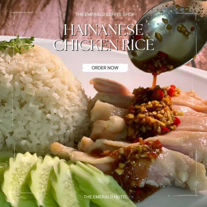 ดิเอมเมอรัลด์ชวนชิมวันนี้ ขอแนะนำเมนูเด็ดที่ไม่แพ้ใครเช่นกันกับ “ข้าวมันไก่” ด้วยเมล็ดข้าวที่หุงสุกจากน้ำต้มไก่ได้ความหอมมัน เรียงเม็ดสวยงาม เสิร์ฟพร้อมไก่ที่ต้มกำลังดี เนื้อนุ่มชุ่มฉ่ำ จุ๊ยซี่ และน้ำจิ้มสูตรเต้าเจี้ยวใส่ขิงต้นตำรับ บริการตลอดเวลาทำการที่ ดิเอมเมอรัลด์ ค็อฟฟี่ช็อพ โรงแรม ดิ เอมเมอรัลด์ พร้อมจานเด่นอื่นๆ อีกมากมาย
