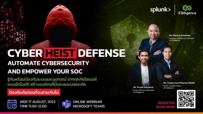 ยังมีภัยไซเบอร์อีกมากมายที่คุณอาจจะกำลังตกเป็นเหยื่อโดยที่ไม่รู้ตัว เพื่อป้องกันภัยไซเบอร์ที่จะทำให้ความเป็นส่วนตัวหรือธุรกิจของคุณเสียหาย ดังนั้น STelligence จึงได้ร่วมกับพาร์ทเนอร์ Splunk จัดสัมมนาออนไลน์ หัวข้อ “Automated Cybersecurity and empower your SOC รู้ทันพร้อมป้องกันระบบและอุปกรณ์ จากทุกภัยไซเบอร์แบบอัตโนมัติ สร้างองค์กรที่มั่นคงและปลอดภัย” เพื่ออัปเดตแนวโน้มภัยคุกคาม รวมไปถึงแนวทางปฏิบัติ มาตรการควบคุม และกรอบการทำงานที่จะช่วยให้องค์กรสร้าง Cybersecurity ได้อย่างมีประสิทธิภาพ พร้อมแนะนำโซลูชันจากวิทยากรผู้เชี่ยวชาญด้านความมั่นคงปลอดภัย เพราะภัยอันตรายอย่างนี้สามารถป้องกันได้ ในวันที่ 17 สิงหาคม 2565 เวลา 11.00-12.00 น. สำหรับผู้ที่สนใจ สามารถลงทะเบียนเข้าร่วมได้ทาง https://bit.ly/3PYxtZp