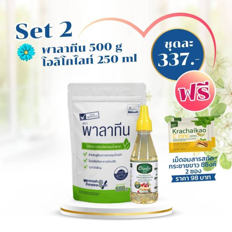 ชุดที่ 2. พาลาทีน 500 กรัม โอลิโกไลท์ 250 มล.ราคาชุดละ 337 บาท แถมฟรี ! เม็ดอมสารสกัดกระชายขาวซีซิงก์ 2 ซอง