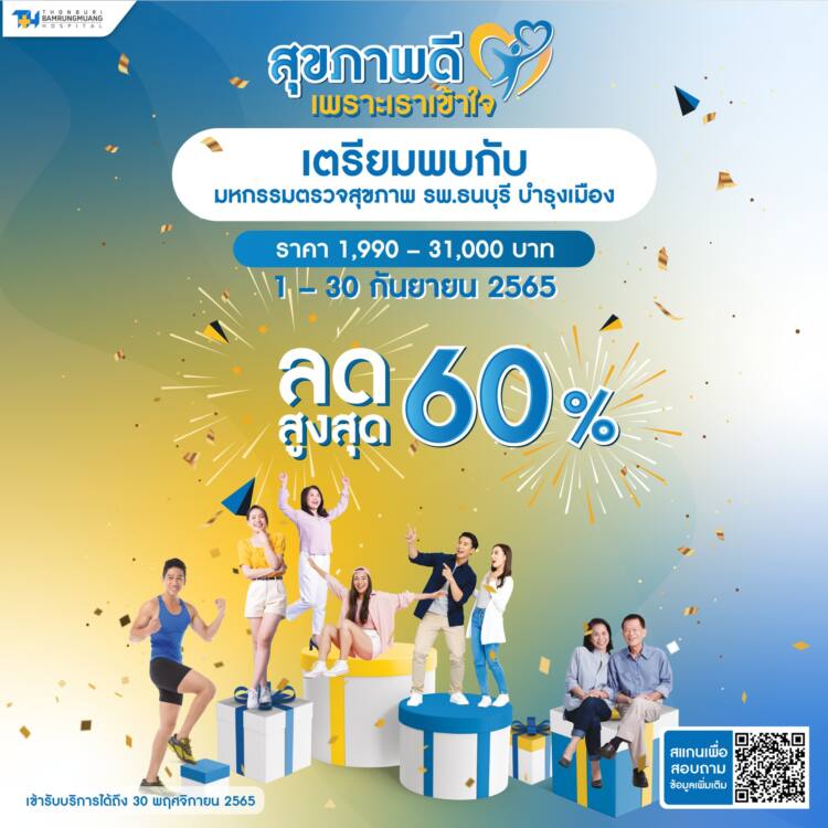 รพ.ธนบุรี บำรุงเมือง มอบแพ็กเกจมหกรรมตรวจสุขภาพครั้งยิ่งใหญ่ “HEALTH EXPO สุขภาพดี เพราะเราเข้าใจ” คัดสรรแพ็กเกจตรวจสุขภาพที่ตรงกับทุกช่วงวัยและการใช้ชีวิตของคุณเพื่อให้ได้ดูแลสุขภาพอย่างทันท่วงทีก่อนจะบานปลายมากกว่า 20 แพ็กเกจ โดยมอบส่วนลดสูงสุด 60% ราคาเริ่มต้น 1,990 – 31,000 บาท