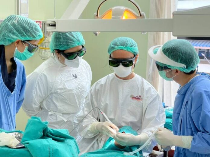 5ก.ย.65 / จากสภาพสังคมไทยในทุกวันนี้มีจำนวนตัวเลขผู้สูงอายุเพิ่มขึ้นเรื่อย ๆ สิ่งที่ตามมาก็คือการเยียวรักษาด้านสุขภาพไม่ว่าจะเป็นโรคประจำตัวหรือโรคที่เป็นไปตามวัย เช่นเดียวกับปัญหาสุขภาพในช่องปากที่ผู้สูงอายุส่วนใหญ่มักจะเจอ หากไม่ได้รับการรักษาอย่างต่อเนื่องหรือถูกวิธี จากแผลอักเสบในช่องปากที่เรื้อรังอาจกลับกลายเป็นโรคร้ายอย่างมะเร็งได้ ด้วยเหตุนี้ทางกลุ่มวิจัยเลเซอร์วิทยาทางทันตแพทยศาสตร์ มหาวิทยาลัยขอนแก่น ได้ร่วมกันคิดค้นนวัตกรรมเลเซอร์เพื่อรักษาแผลอักเสบหรือรอยโรคในช่องปากสำหรับผู้สูงอายุ ในท้องที่ห่างไกลโดยเฉพาะในระดับตำบลให้สามารถเข้าถึงบริการการรักษาทางทันตกรรมอย่างมีคุณภาพ โดยได้รับการสนับสนุนจากสำนักงานการวิจัยแห่งชาติ ( วช. )ภายใต้กระทรวงการอุดมศึกษา วิทยาศาสตร์ วิจัยและนวัตกรรม