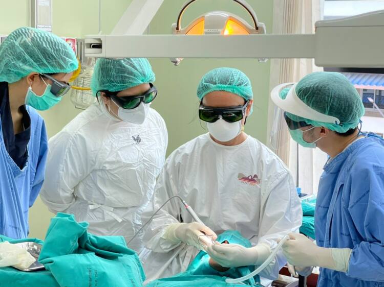 สำหรับกลไกในการรักษาด้วยเลเซอร์ทางทีมวิจัยได้ใช้เวลาในการค้นคว้าทดลองมากว่า 10 ปี ผลออกมาพบว่ามีประสิทธิภาพในการรักษา ซึ่งการใช้เลเซอร์นี้มีหลายกลุ่ม เช่น เลเซอร์ความเข้มข้นสูงใช้ผ่าตัดเนื้อเยื่ออ่อนช่องปาก และตัดฟันหรือผ่าตัดกระดูกได้ เลเซอร์แบบเฉพาะเจาะจงใช้เพื่อทำลายเนื้อเยื่อที่เป็นโรค และเลเซอร์ความเข้มต่ำซึ่งเป็นชนิดที่ใช้ในโครงการนี้คือ ใช้ความยาวคลื่น 8.30 นาโนเมตร ปรับตั้งเพื่อเป็นกลไกที่จะช่วยห้ามเลือดจากแผลในปากหรือแผลถอนฟัน และลดอาการอักเสบ