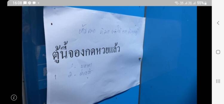 ทั้งนี้ ผู้สื่อข่าวได้รับเรื่องร้องเรียนว่ามีการติดป้ายจองคิวซื้อสลากในลักษณะข่มขู่ว่าใครปลดป้ายออก จะทำให้ตู้ ATM ทั่วอำเภอพังใช้งานไม่ได้ โดยมีการเขียนข้อความไว้ว่า “ตู้นี้จองกดหวยแล้ว ห้ามลอก ถ้าลอกจะทำให้ ATM เสียทุกตู้ 1.บุชษา 2.เอกธวัช”