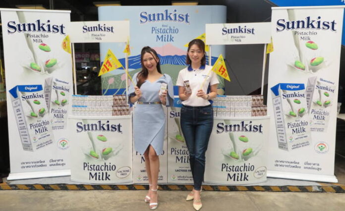 ซันคิสท์ แบรนด์ผลิตภัณฑ์ถั่วพิสทาชิโอ และเครื่องดื่มน้ำนมพิสทาชิโอภายใต้เครือเฮอริเทจ นำโดย วลัยทิพย์ ซื่อตรงมั่นคง (ขวา) ผู้อำนวยการฝ่ายสื่อสารองค์กร เครือเฮอริเทจ ร่วมออกบูธแจกนมพิสทาชิโอ แบรนด์ซันคิสท์ เครื่องดื่มนมทางเลือกเพื่อสุขภาพ โดยครั้งนี้ได้นำนมพิสทาชิโอ ทั้งหมด 4 รสชาติ ได้แก่ รสออริจินอล, รสช็อกโกแลต, รสชาไทย และสูตรไม่เติมน้ำตาล มาเชิญชวนทุกคนให้ดื่มอร่อยได้ประโยชน์ กับเครื่องดื่มน้ำนมพิสทาชิโอ แบรนด์ซันคิสท์ ในช่วงเทศกาลกินเจที่กำลังจะมาถึงนี้ ณ อาคาร ซันทาวเวอร์ส เมื่อเร็ว ๆ นี้