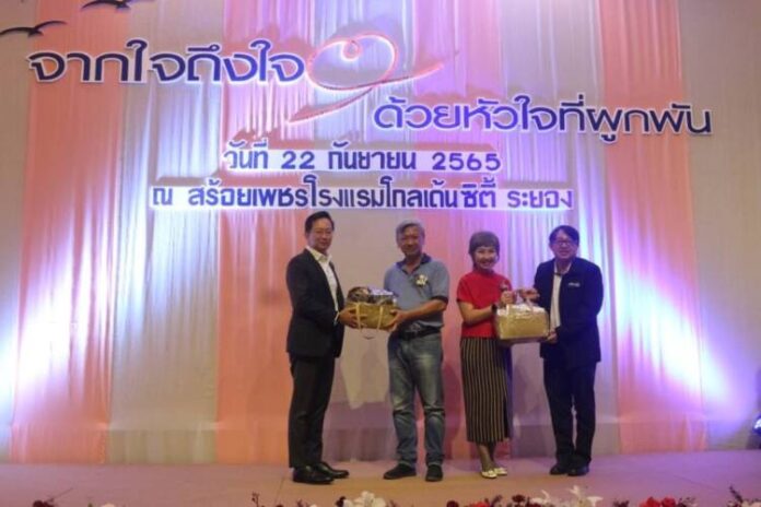เมื่อวันที่ 22 กย.65 สมาคมเพื่อนชุมชน โดย นายมงคล เฮงโรจนโสภณ นายกสมาคมเพื่อนชุมชน พร้อมด้วยคณะผู้บริหาสมาคมเพื่อนชุมชน เข้าร่วมงานแสดงมุทิตาจิตแก่หัวหน้าส่วนราชการที่เกษียณอายุราชการ ประจำปี 2565 รวมทั้งหมด 14 ท่าน ในครั้งนี้มี นายชาญนะ เอี่ยมแสง ผู้ว่าราชการจังหวัดระยอง, นางธัมมิกา เอี่ยมแสง นายกเหล่ากาชาดจังหวัดระยอง และ นายยุทธพล องอาจอิทธิชัย รองผู้ว่าราชการจังหวัดระยอง พร้อมมอบของที่ระลึก อีกทั้งยังมี หัวหน้าส่วนราชการต่างๆ ที่ทางสมาคมเพื่อนชุมชนได้มีการประสานงานด้วยดีมาโดยตลอด ประกอบด้วย นางมาริน สมคิด เกษตรจังหวัดระยอง, นายสมชาย รุ่งเรือง ท้องถิ่นจังหวัดระยอง, นางสาวประภาศรี พิษณุพงศวิชชา หัวหน้าสำนักงานจังหวัดระยอง, นางบุศรินทร์ เกิดมณี พัฒนาสังคมและความมั่นคงของอนุษย์จังหวัดระยอง ที่เข้าร่วมงาน โดย สมาคมเพื่อนชุมชน ยังร่วมออกบูธอาหาร (ขนมเปี๊ยะ 8 เซียน วิสาหกิจชุมชนเนินพยอม) ในงานครั้งนี้ด้วย จัด ณ โรงแรมโกลเด้นซิตี้ จ.ระยอง