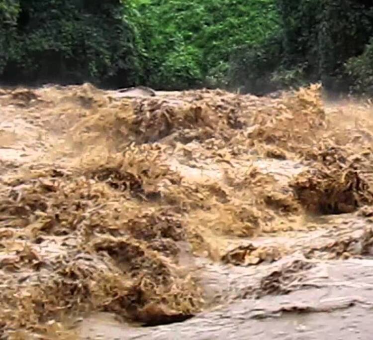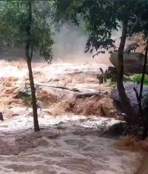 ขณะนี้….น้ำป่าไหลบ่าอย่างรุนแรง หอบเอาต้นไม้ ท่อนไม้ ที่ถูกมือมนุษย์ทำลาย โค่นล้ม กันย่อยยับไปหมด