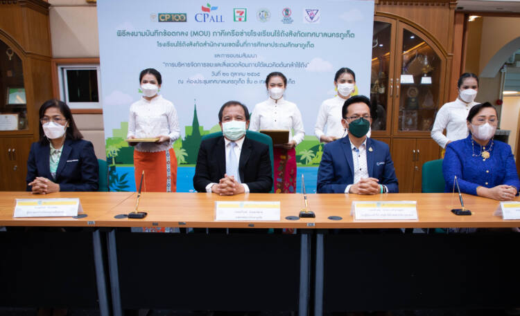 ด้านนายประสิทธิ์ ฉกาจธรรม รองกรรมการผู้จัดการ บริษัท ซีพี ออลล์ จำกัด (มหาชน) ผู้บริหารเซเว่น อีเลฟเว่น และเซเว่น เดลิเวอรี่ กล่าวว่า ความร่วมมือของกลุ่มโรงเรียนในพื้นที่เกาะภูเก็ตที่จะเข้ามาเป็นสมาชิกภาคีเครือข่ายไร้ถังรุ่นใหม่เพื่อร่วมกับองค์กรภาคเอกชนกว่า 10 แห่ง และ 467 โรงเรียนรุ่นพี่ทั้งที่สังกัดสำนักงานคณะกรรมการการศึกษาขั้นพื้นฐาน (สพฐ.) ทั่วประเทศ และที่สังกัดกรุงเทพมหานครในครั้งนี้ จะช่วยส่งเสริมการแก้ปัญหาขยะที่ต้นทาง ให้แก่นักเรียน ชุมชน ประชาชน และนักท่องเที่ยว โดยใช้วิถีโรงเรียนไร้ถัง ซึ่งประสบความสำเร็จในการลดปริมาณขยะจาก 15 ตัน/เดือน เหลือเพียง 2 กิโลกรัม/เดือน ผ่านการคัดแยกวัสดุรีไซเคิล วัสดุย่อยสลายได้ออกจากขยะ ก่อนนำไปรียูส รีไซเคิล อัพไซเคิล จะเป็นอีกแนวทางหนึ่งในการแก้ปัญหาขยะในจังหวัดภูเก็ต ซึ่งจะสามารถลดปริมาณขยะได้อย่างเป็นรูปธรรม
