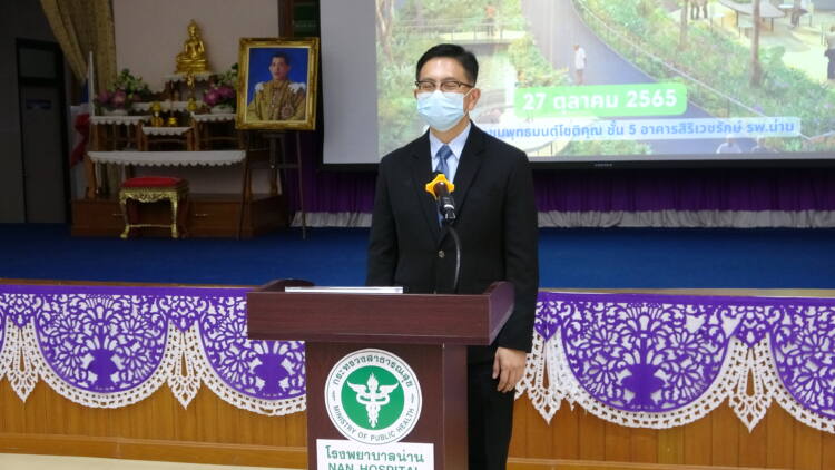 เมื่อวันที่ 27 ตุลาคม 2565 ณ ห้องประชุมพุทธมนต์โชติคุณ อาคารสิริเวชรักษ์ โรงพยาบาลน่าน อำเภอเมืองน่าน จังหวัดน่าน นายแพทย์ วสันต์ แก้ววี ผู้อำนวยการโรงพยาบาลน่าน เป็นประธานในการประชุมเชิงปฏิบัติการในโครงการพัฒนาระบบสุขภาพเมืองที่เป็นมิตรกับผู้สูงอายุ (Age Friendly City) ในพื้นที่นำร่องในเขตเทศบาลเมืองน่าน โดยมีแพทย์หญิงวาลิกา รัตนจันทร์ รองผู้อำนวยการด้านบริการปฐมภูมิ เป็นผู้กล่าวรายงาน