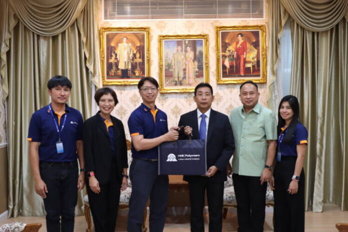 นายปรีชา โปซิว รองประธาน สายงานผลิต และนางสาวบุปผาพรรณ พานทอง ผู้จัดการฝ่ายกิจการเพื่อความรับผิดชอบต่อสังคม ในนามบริษัท เอ็ชเอ็มซี โปลีเมอส์ จำกัด เข้าร่วมแสดงความยินดีพร้อมทั้งแนะนำธุรกิจของบริษัทฯ แก่คุณไตรภพ วงศ์ไตรรัตน์ เนื่องในโอกาสที่เข้ารับตำแหน่งผู้ว่าราชการจังหวัดระยอง ณ ศูนย์ราชการจังหวัดระยอง