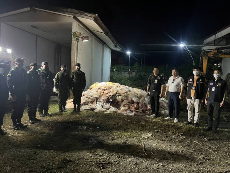 กรุงเทพฯ 31 ต.ค. – กรมปศุสัตว์ลุยตรวจเข้ม ป้องกันและปราบปรามการลักลอบนำเข้าเนื้อหมูเถื่อนต่อเนื่อง ล่าสุดผนึกกำลังทหารจับ “กองทัพมด” ที่กำลังขนเนื้อหมู 5 ตันซึ่งลักลอบนำเข้ามาจากประเทศกัมพูชา ขณะนำขึ้นรถห้องเย็นที่ชายแดนจังหวัดสระแก้ว โดยด่านกักกันสัตว์สระแก้วทำลายเนื้อหมูเถื่อนที่ยึดได้เรียบร้อยแล้ว