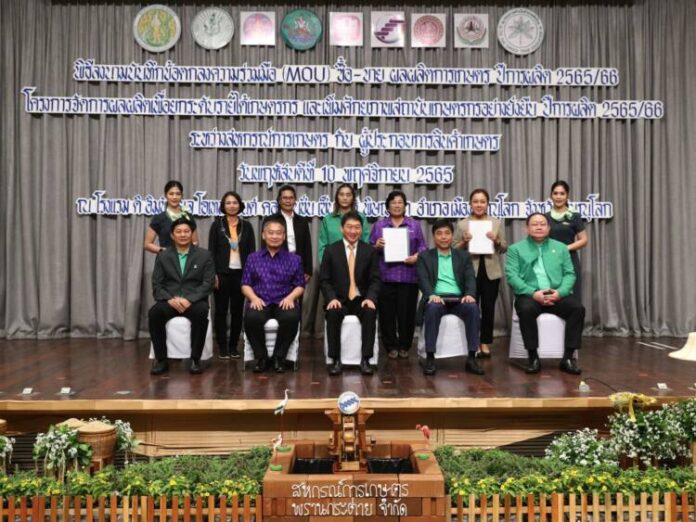 (10 พฤศจิกายน 2565) นายวิศิษฐ์ ศรีสุวรรณ์ อธิบดีกรมส่งเสริมสหกรณ์และกรรมการธนาคารเพื่อการเกษตรและสหกรณ์การเกษตร (ธ.ก.ส.) เป็นประธานในพิธีลงนามความร่วมมือการเชื่อมโยงธุรกิจสินค้าเกษตรในโครงการจัดการผลผลิตเพื่อยกระดับรายได้เกษตรกรและเพิ่มศักยภาพสถาบันเกษตรกรอย่างยั่งยืน ภายใต้แนวคิดแก้หนี้ แก้จน & ก้าวพ้นวิกฤต ระหว่างนายโสรัต โสพรรณรัตน์ รองผู้จัดการ ธ.ก.ส. และส่วนงานราชการ สหกรณ์การเกษตรและผู้ประกอบการที่เกี่ยวข้อง เพื่อเชื่อมโยงธุรกิจเกษตรตั้งแต่ต้นน้ำ กลางน้ำ ปลายน้ำและสร้างมูลค่าเพิ่มให้เกิดขึ้นในห่วงโซ่การผลิต เพิ่มศักยภาพสถาบันเกษตรกรจนไปสู่การสร้างรายได้ให้แก่เกษตรกรอย่างยั่งยืน โดยมีนายไพศาล หงษ์ทอง ผู้ช่วยผู้จัดการ ธ.ก.ส. และภาคีเครือข่าย ร่วมเป็นสักขีพยาน ณ ห้องประชุมพิษณุโลก คอนเวนชั่น โรงแรม ดิอิมพีเรียล โฮเทล แอนด์ คอนเวนชั่น เซ็นเตอร์ พิษณุโลก อำเภอเมือง จังหวัดพิษณุโลก