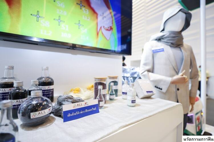 นอกจากนี้ ซีพี ออลล์ ยังนำเสนอ “วัสดุกราฟีน” หรือ “อนุพันธ์กราฟีน” (กราฟีนออกไซด์ และรีดิวซ์กราฟีนออกไซด์) ซึ่งมีคุณสมบัติที่โดดเด่นในด้านสมบัติเชิงกล และมีความยืดหยุ่นสูงมาก โปร่งแสง น้ำหนักเบา ยับยั้งการเจริญเติบโตของเชื้อแบคทีเรีย และเชื้อราได้เป็นอย่างดี เป็นฉนวนป้องกันความร้อน และฉนวนไฟฟ้า ตลอดจนมีคุณสมบัติเป็นตัวนำที่ดีเยี่ยม ที่ขณะนี้ กำลังพัฒนานวัตกรรมนี้มาใช้ประโยชน์ในหลายๆ อุตสาหกรรม