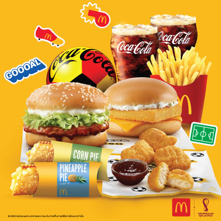 Mcdonald’s อิ่มสุด คุ้มจัด: พบกับเซ็ต Mcdonald’s: FIFA World Cup FIFA Champion ประกอบไปด้วย ซามูไรเบอร์เกอร์, แมคฟิช, นักเก็ตไก่ 4 ชิ้น ที่มาพร้อมเคจันซอส เฟรนช์ฟรายส์ไซซ์ L 1 เสริมความหวานด้วยของหวานสุดอร่อยอย่าง พายข้าวโพด และพายสับปะรด เสิร์ฟพร้อมโค้ก 16 ออนซ์ถึง 2 แก้ว พิเศษในเทศกาลบอลโลกแบบนี้รับไปเลยลูกบอลฟีฟ่า 1 ชิ้น ในราคาพิเศษเพียง 399 บาทเท่านั้น