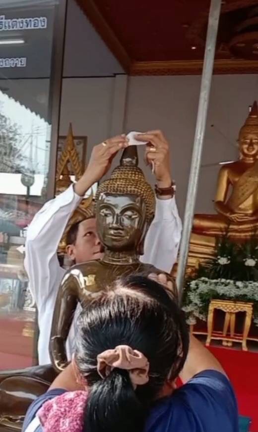 ตัวแทนในพิธีฯได้เปลี่ยนผ้าสไบห่มพระพุทธโสธร