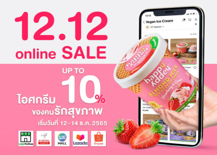 แฮปปี้ แอดดี้ ไอศกรีมวีแกนเพื่อคนรักสุขภาพเกรดพรีเมี่ยม ผลิตจากนมอัลมอนด์คั้นสดเด็มเมล็ดที่ให้ประโยชน์ต่อร่างกาย ไม่มีน้ำตาลทราย ไขมันทรานส์ และคอเลสเตอรอล จัดโปรโมชั่น 12.12 Online Sale ลดส่งท้ายปีสูงสุด 10% ตั้งแต่วันที่ 12 – 14 ธันวาคม 2565 เฉพาะช่องทางออนไลน์ Shopee, Lazada, Wemall, Line My Shop สอบถามเพิ่มเติมที่ LINE official @137degrees (มีเครื่องหมาย@) หรือโทร 062-305-3777