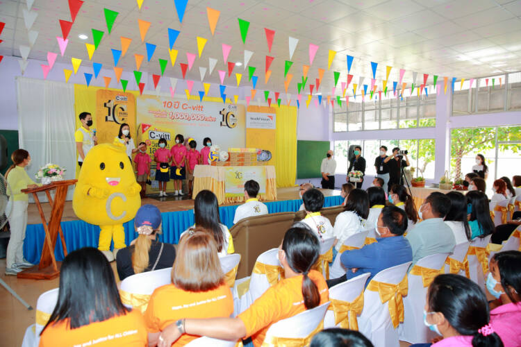 กว่า 10 ปี ที่ผ่านมาบริษัทฯ ได้ให้พนักงานเข้าไปมีส่วนร่วมกับชุมชนผ่านกิจกรรมต่าง ๆ มากมาย เพื่อมุ่งเน้นการยกระดับคุณภาพชีวิตให้ประชาชนได้มีสุขภาพที่ดีทั้งร่างกายและจิตใจ และล่าสุดกับกิจกรรม “10 ปี C-vitt เพื่ออนาคตเด็กไทย แข็งแรง สดใสไปด้วยกัน” โดยมีเป้าหมายเพื่อลดปัญหาทุพโภชนาการของเยาวชนไทยในพื้นที่ห่างไกลความเจริญ ซึ่งกิจกรรมครั้งนี้ได้มอบซี-วิท มินิ ผลิตภัณฑ์วิตามินซี จำนวน 1,000,000 กล่อง พร้อมอุปกรณ์การเรียนการสอนและอุปกรณ์กีฬา มูลค่ารวมกว่า 14 ล้านบาท ให้กับเยาวชนไทยคนทั่วประเทศ ผ่านมูลนิธิศุภนิมิตแห่งประเทศไทย และมูลนิธิเด็กโสสะแห่งประเทศไทย ในพระบรมราชินูปถัมภ์ และที่สำคัญบริษัทฯ ยังได้นำทีมพนักงานซี-วิท ลงพื้นที่จัดกิจกรรมให้ความรู้เรื่องวิตามินที่จำเป็นต่อร่างกาย และร่วมเล่นเกมเพื่อเสริมสร้างความแข็งแกร่งด้านสุขภาพที่ดีทั้งร่างกายและจิตใจ (Healthy Body & Mind) ให้แก่น้อง ๆ ณ โรงเรียนบ้านคลองคต อำเภอโป่งน้ำร้อน จังหวัดจันทบุรี โดยกิจกรรมดังกล่าวได้สอดแทรกเรื่องประโยชน์ของวิตามินซีที่จะช่วยให้ร่างกายแข็งแรง พร้อมทั้งปลูกฝังเรื่องการรับประทานอาหารที่จะช่วยเพิ่มวิตามินซีให้กับร่างกาย เพื่อให้น้อง ๆ เยาวชนได้นำความรู้ไปปรับใช้ในการบริโภคอาหารในชีวิตประจำวันต่อไป”